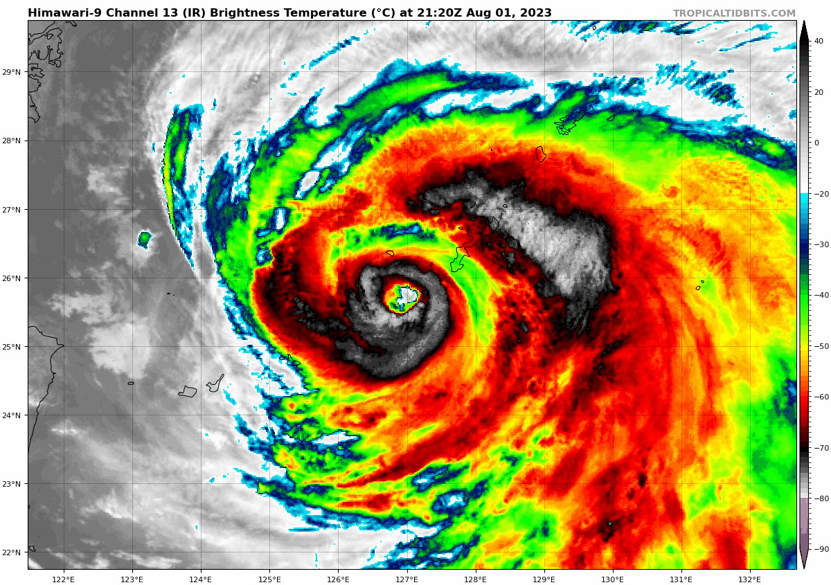 ▲卡努今逐漸通過日本那霸南側海域。(圖/翻攝tropicaltidbits)