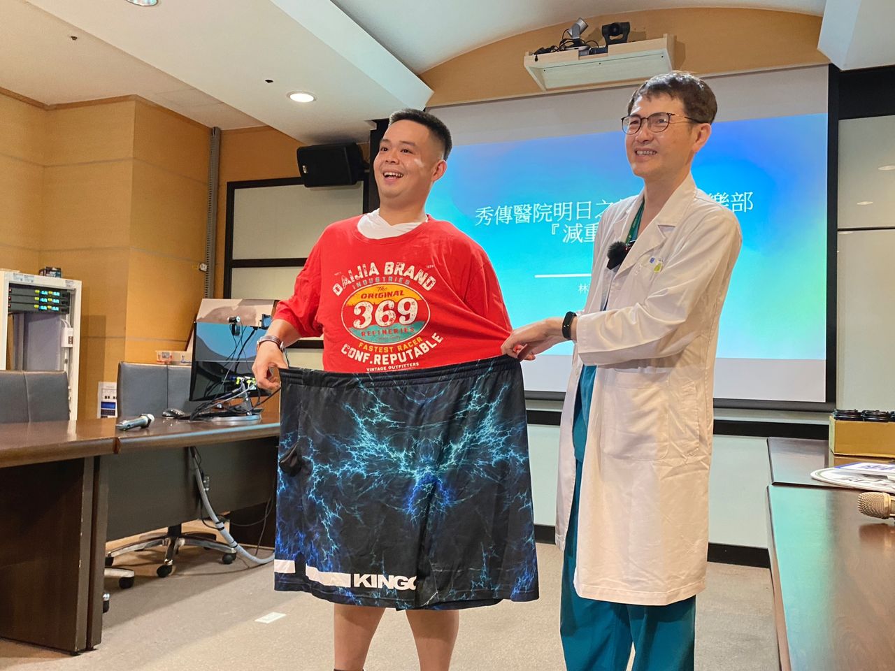 南投1名體重高達173公斤的32歲健力選手,從小就是可愛的胖小弟,想要變型男找回健康及自信,2年前經秀傳醫院減重與新陳代謝手術中心進行胃繞道手術後,已經成功甩掉81公斤、相當於兩個林襄(體重約41公斤)的體重,腰圍更從66腰成38腰,行動不方便,走幾步就會喘、身體也出現怪味道的情況也改善,人也變得更有自信。
