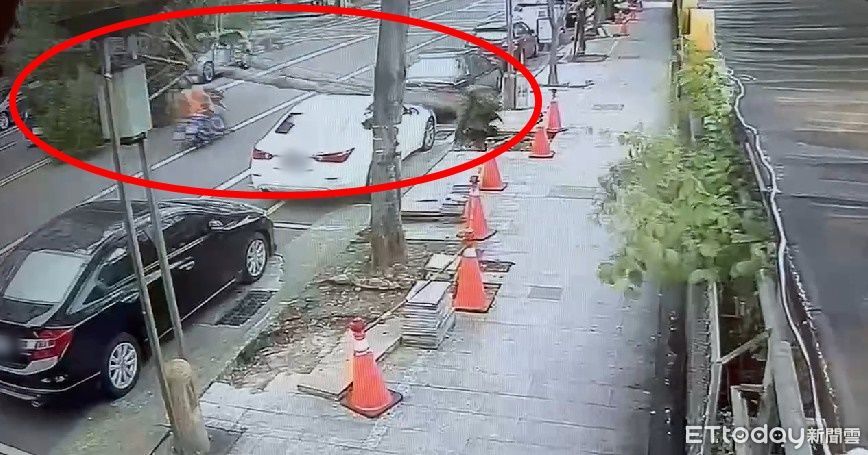 稍早附近監視器畫面曝光,只見該棵傾倒的路樹,原先部分根部就已裸露出來,而當身穿橘黃色上衣的騎士行經該處時,路樹突然整棵倒下,砸中該名騎士,畫面相當驚險。