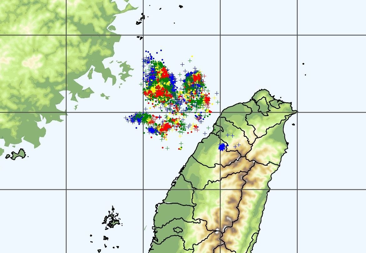 ▲海峽北部昨夜出現密集閃電。(圖/台灣颱風論壇|天氣特急)