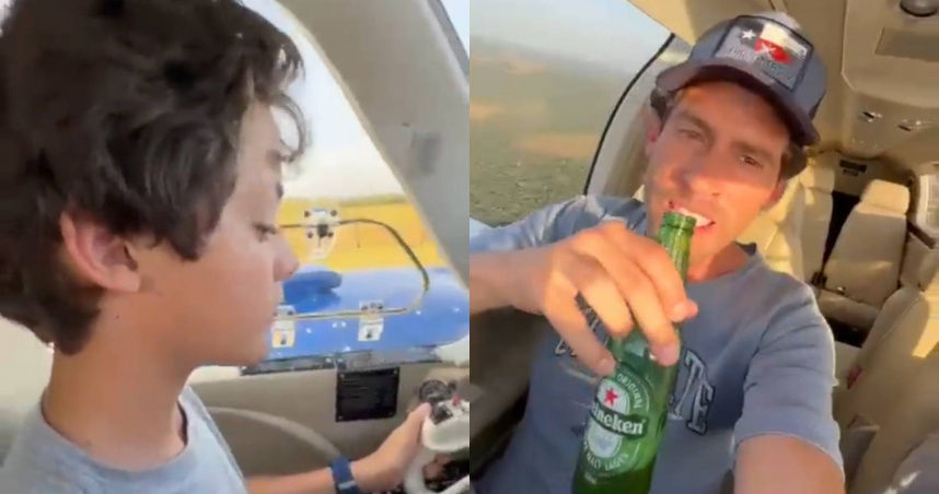 ▲ 網路流傳的影片顯示加隆放任兒子開飛機,自己在一旁喝酒。(圖/翻攝自社群網站X)