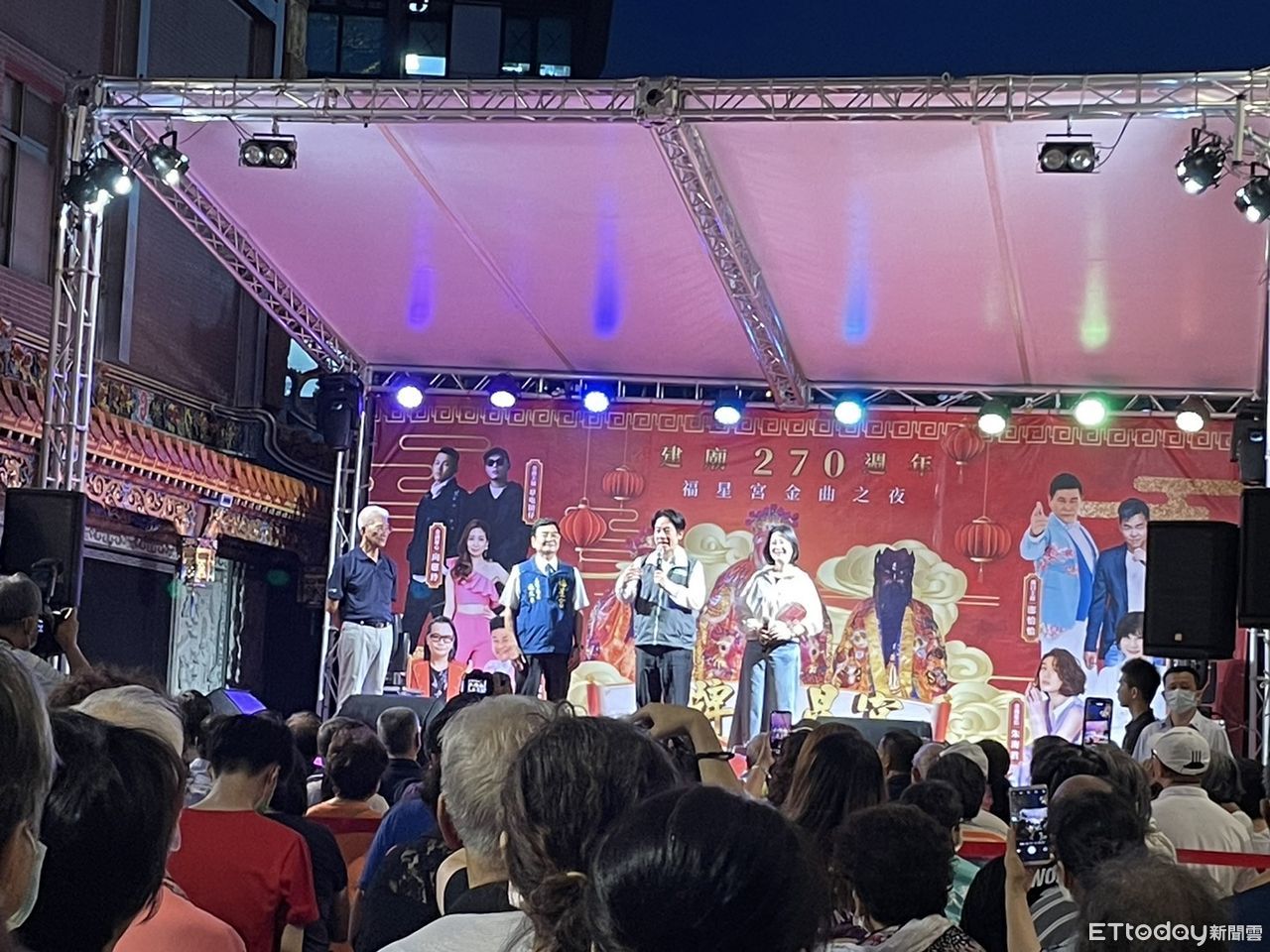 今年是台北市北投區石牌福星宮建廟270周年,賴清德晚間前往參香並出席「福興宮金曲之夜」活動,由於近日捲入性侵性騷疑雲的藝人NONO妻子朱海君,也在時隔37天後於該場活動公開現身,引發媒體關注。賴清德大進場時更「強碰」朱海君表演時段,吸引不少民眾拿手機搶拍。