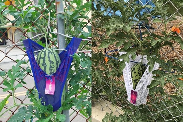 至於為何正常的西瓜長在地上、這處農場的主人卻要使用高架的方式來種植?也有內行人推測,可能是這樣不怕西瓜在田裡遇水爛掉,加上西瓜有一定的重量,會自然下垂,才會選用蕾絲內褲來撐住。