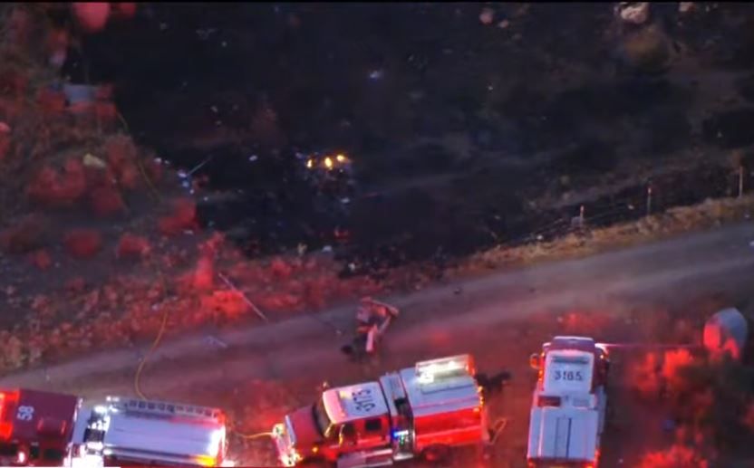 據CBS電視新聞畫面可見,至少3輛消防車與1輛救護車已部署至墜機地點,且周邊地面呈現大片焦黑,尚不確定這是由於直升機墜機燒毀或是原先燃燒中的野火所導致,當局仍在進行調查。
