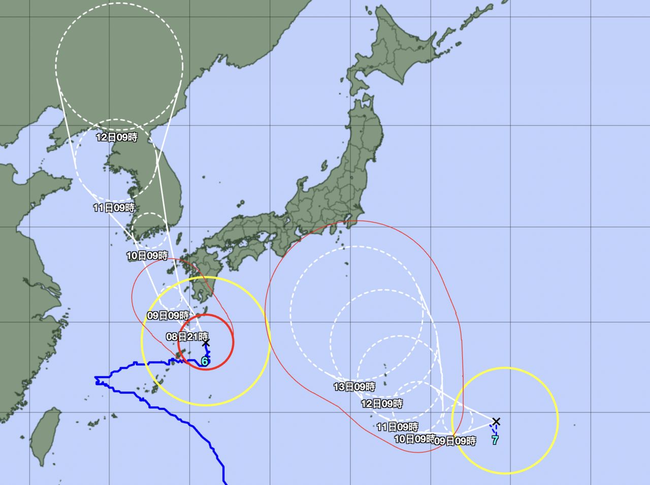 氣象局表示,颱風「卡努」未來幾天通過日本九州往韓國前進。而第七號颱風「蘭恩」將朝向日本移動。另外在東太平洋的颱風「朵拉」將會持續往西北太平洋移動,預計約四、五天後跨洋進入西北太平洋,屆時將成為第八號颱風。