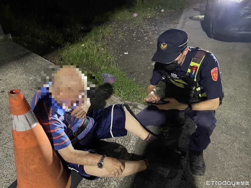 東港分局新園分駐所警員陳彥旭、高煜程2員,日前執行深夜2-4時巡邏勤務時,於3時48分許遇民眾報案稱有一名老翁坐於新園鄉仙吉加油站前需協助,警方獲報立即趕往現場查看,發現他跌坐地面。