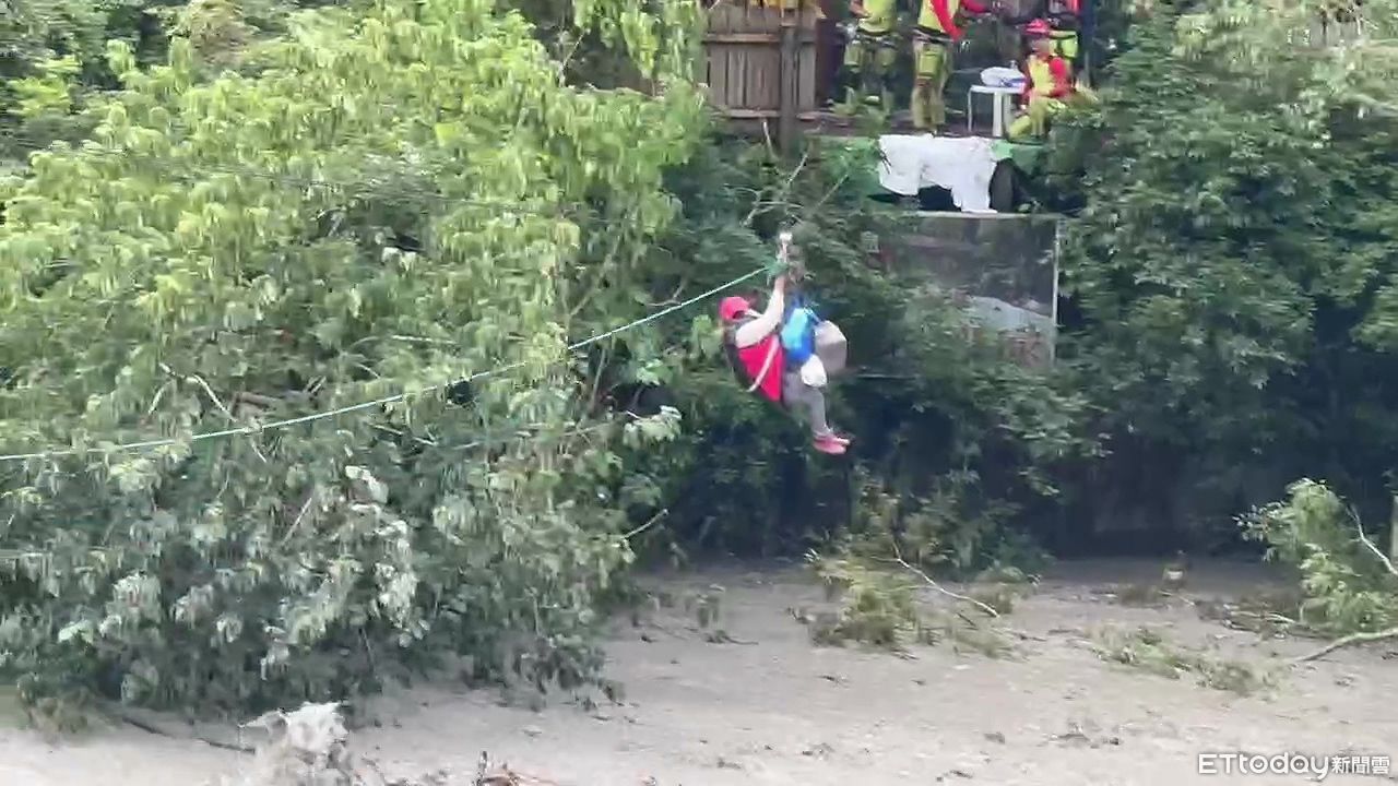 南投縣廬山溫泉區因道路中斷,仍有多人受困裡頭,雖物資充足,但有部分幼兒、年長者急需撤離。台中市消防特搜大隊與南投、新北、消防署特搜今(8)日執行救援任務,在50米左右的河道兩旁架起繩索,協助民眾脫困,截至10時33分已經救出15人,陸續救援中。