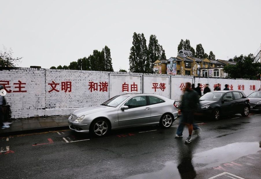 法新社報導,這條倫敦東區街道以街頭藝術聞名,當地居民6日醒來發現紅磚巷牆面原本的塗鴉被人以白漆塗掉,並以紅漆噴上「富強」、「愛國」、「和諧」、「民主」、「平等」、「自由」與「法治」等中文字樣,而這24個字正是中共倡導的「社會主義核心價值觀」12個「基本內容」。