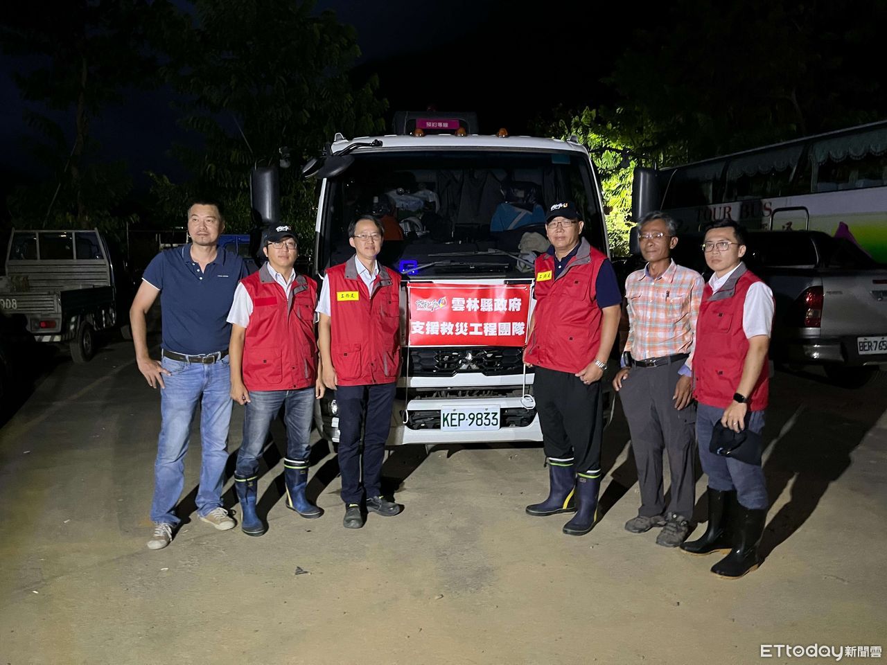 ▲工務處長汪令堯協調雲林所有搶通道路機具業者,將挖土機45型7台、挖土機120型14台、挖土機200型1台、鏟土機11台、3.5噸貨車3台,前往南投搶修開通道路。(圖/記者蔡佩旻翻攝)