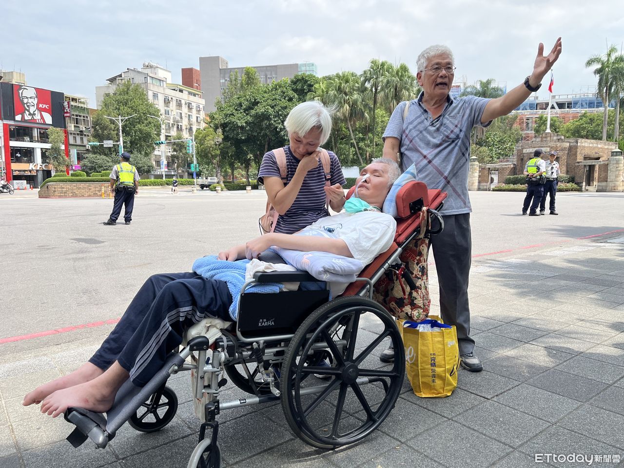 ▲植物人張振聲父母今到台大抗議,要求台大提高照護費到每年65萬。(圖/記者許敏溶攝)