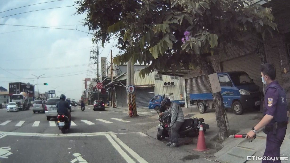 ▲男路上突倒趴機車龍頭險倒地,警方上前關心意外揪出吸毒。(圖/記者賴文萱翻攝)