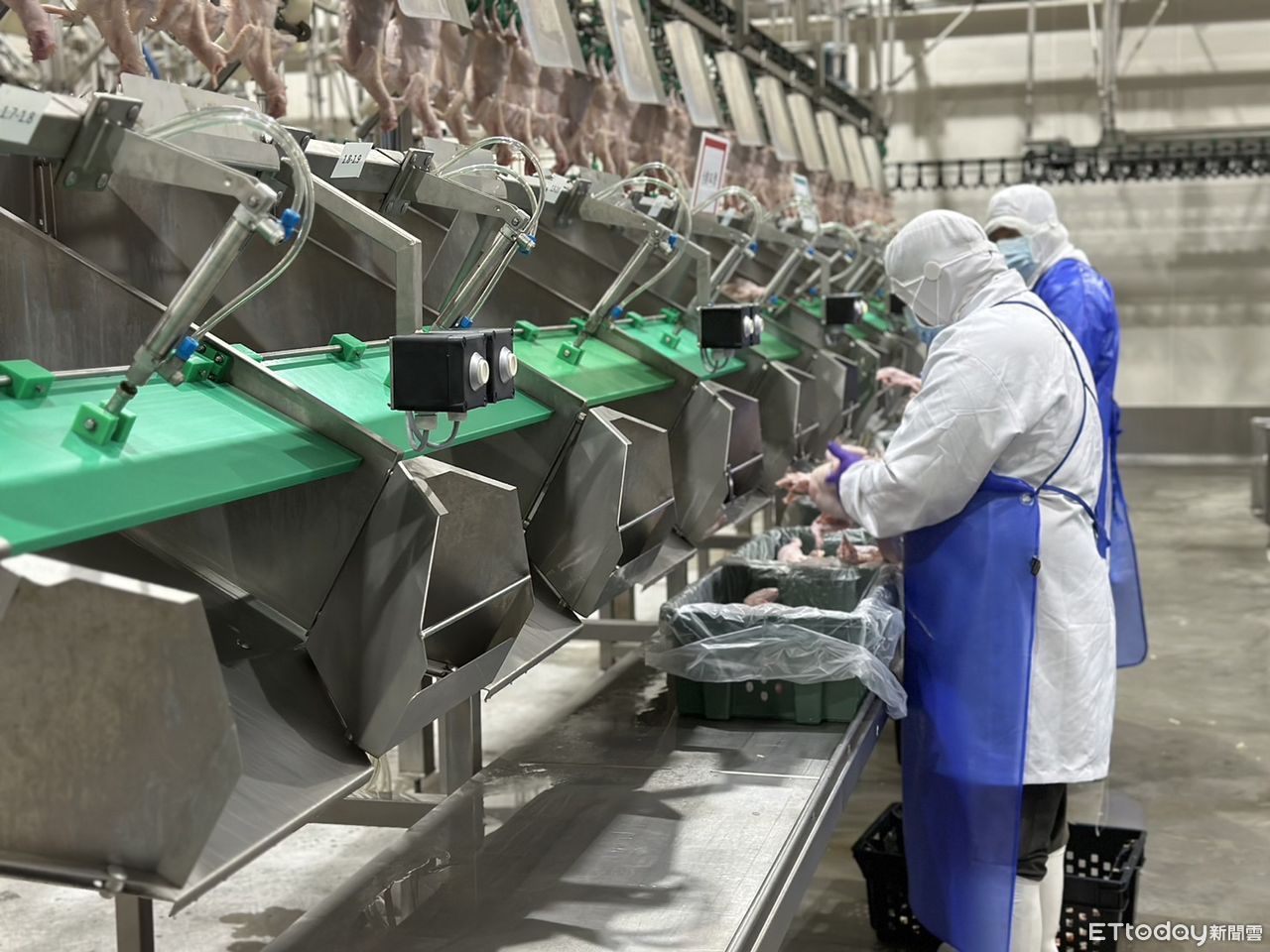 業者透露,雞肉電宰流程可分成屠宰、內臟處理及屠後降溫3階段,而「全氣冷式電宰」是指在屠後降溫階段,將全雞送入全長3850公尺、0℃的全氣冷室,經過3小時冷風降溫,讓全雞從屠後的38℃降到4℃以下,期間更整合智能監控影像系統,透過智能影像識別、秤重計數系統,讓生產線上所有雞隻都留有影像及生產數據紀錄,以提供完整且詳細的產銷履歷,讓消費者食用更安心。