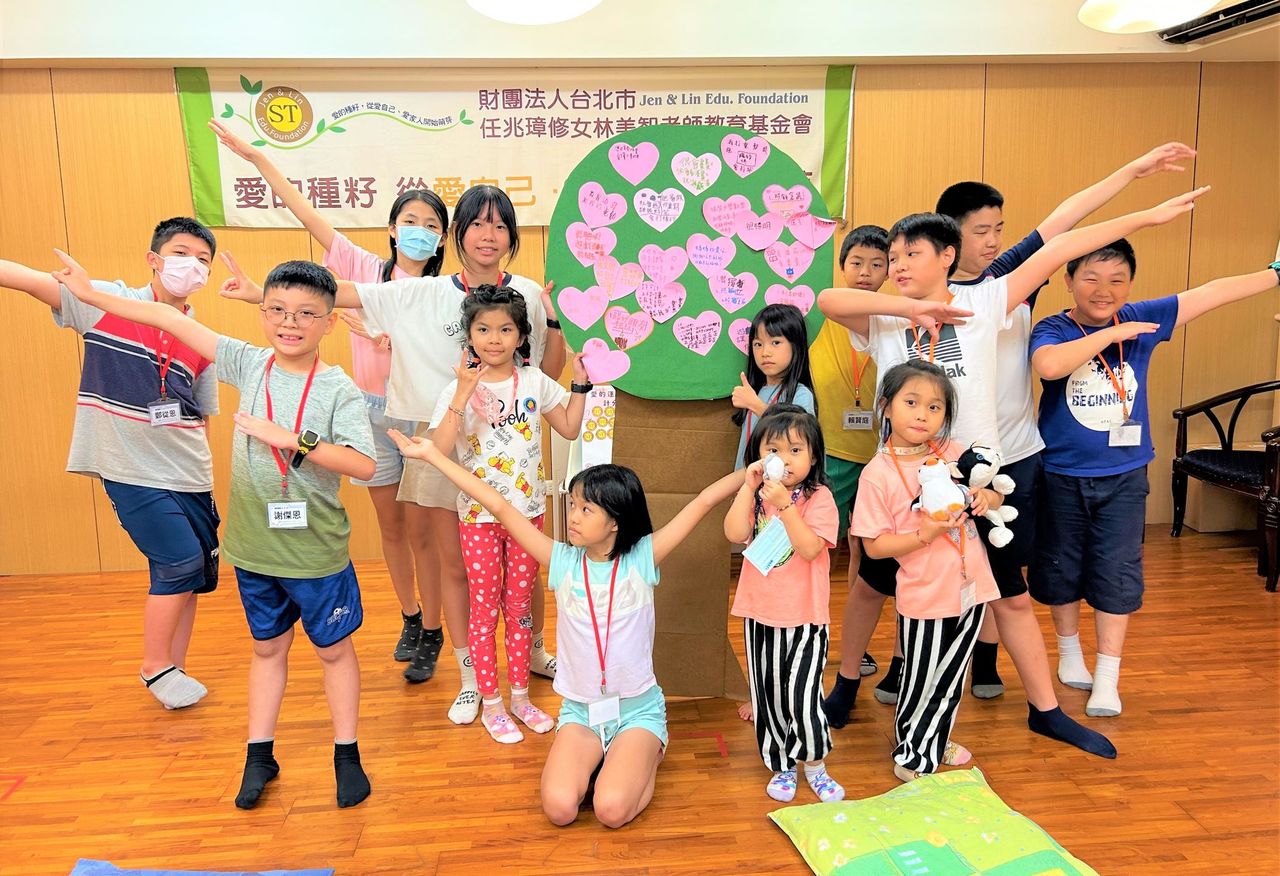 ▲任林教育基金會舉辦「愛的運動123─暑假品格探索營」,透過觀察到自己的優點,了解到「愛自己」才是滋養生命的基礎。(圖/任林教育基金會提供,下同)