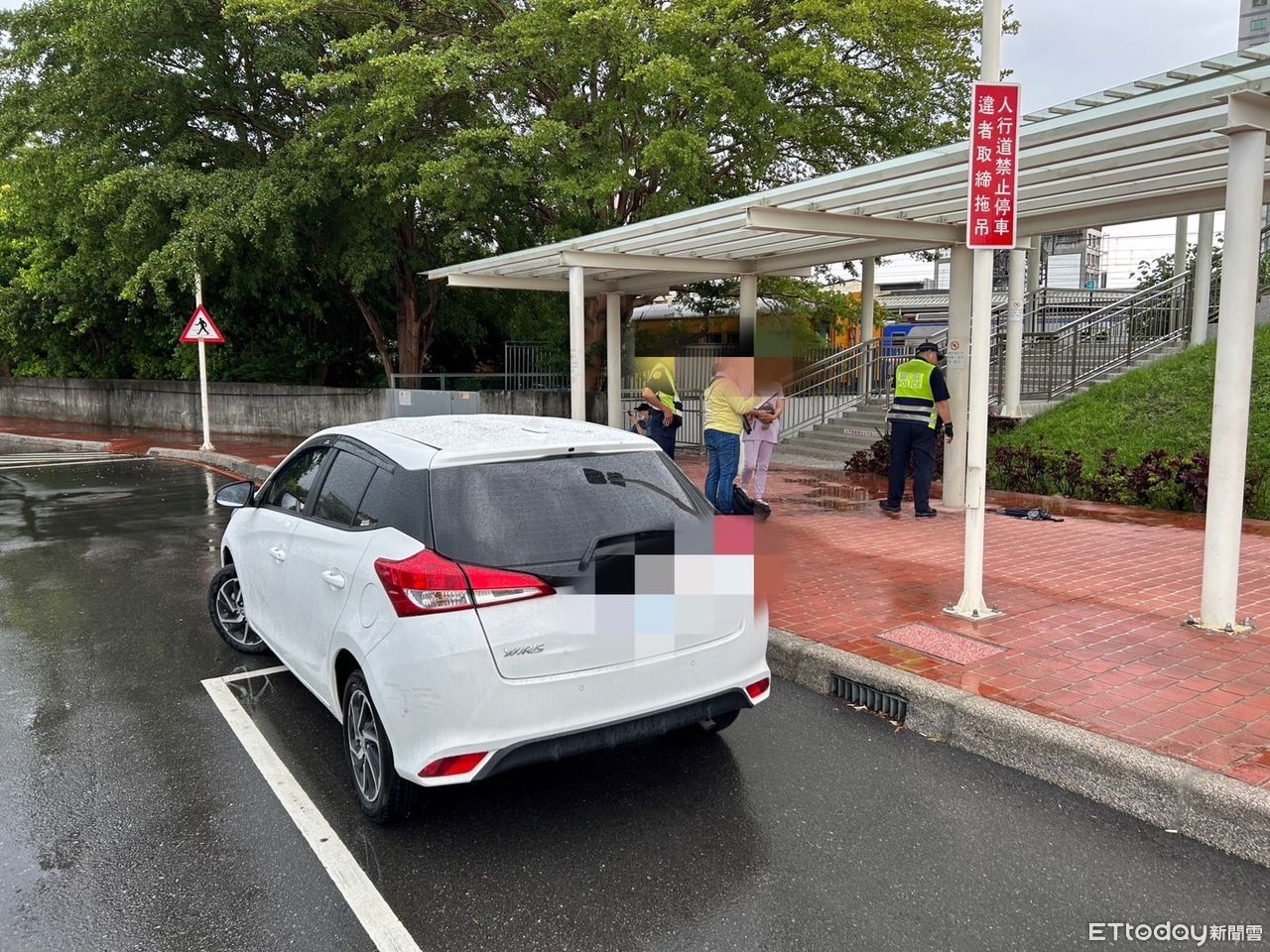 ▲苗栗監理站偕同苗栗警方,於苗栗火車站執行稽查白牌車違法載客勤務,發現一輛載有4名學生的白色自用小客車停靠下客,當場舉發。(圖/苗栗監理站提供,下同)