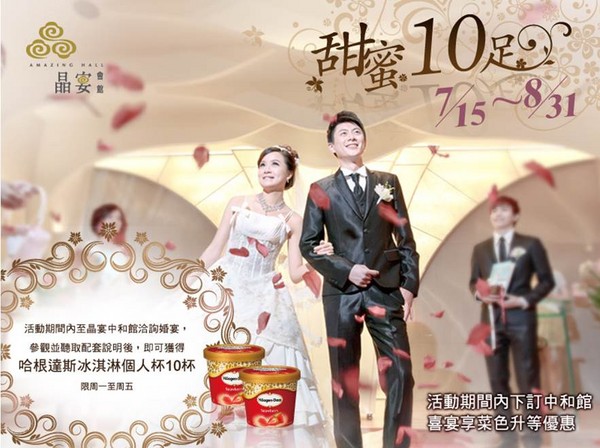 ▲8月底前來晶宴中和館洽詢婚宴資訊,即送哈根達斯個人杯10份。(圖/業者提供)