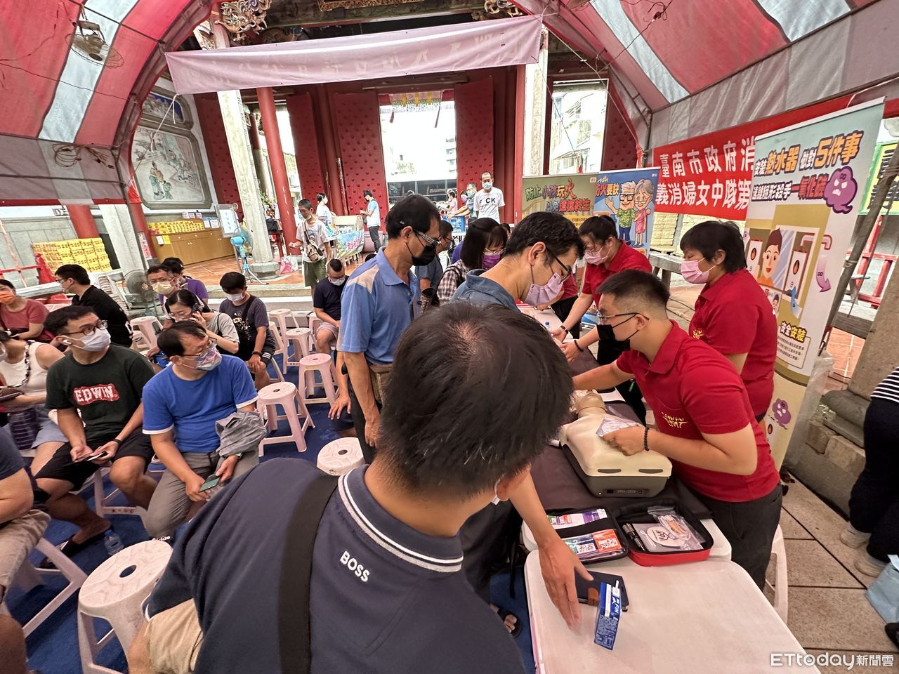 ▲台南市消防局第七大隊、中正分隊13日上午結合祀典大天后宮辦理「媽祖有愛你無礙、捐血救人學防災」宣導及捐血活動。(圖/記者林東良翻攝,下同)