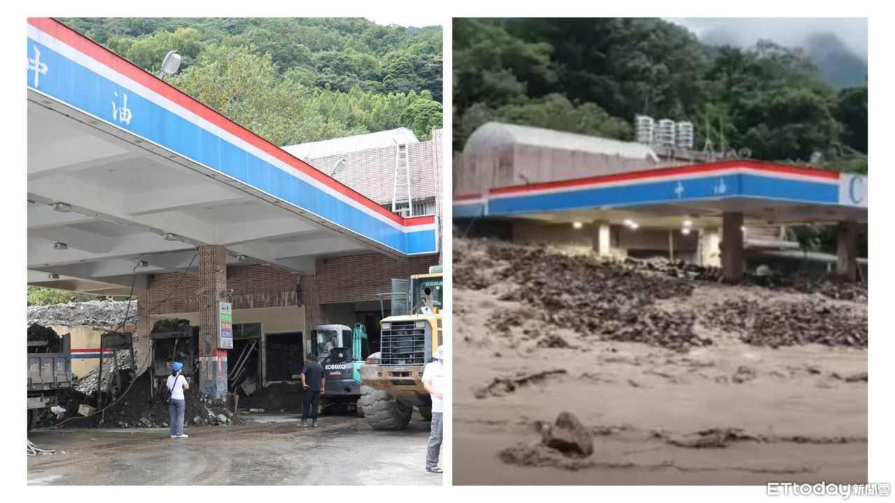 ▲卡努颱風災區持續進行搶修復原,仁愛鄉南豐村加油站目前已重見天日。(圖/南投縣政府提供、資料照片)