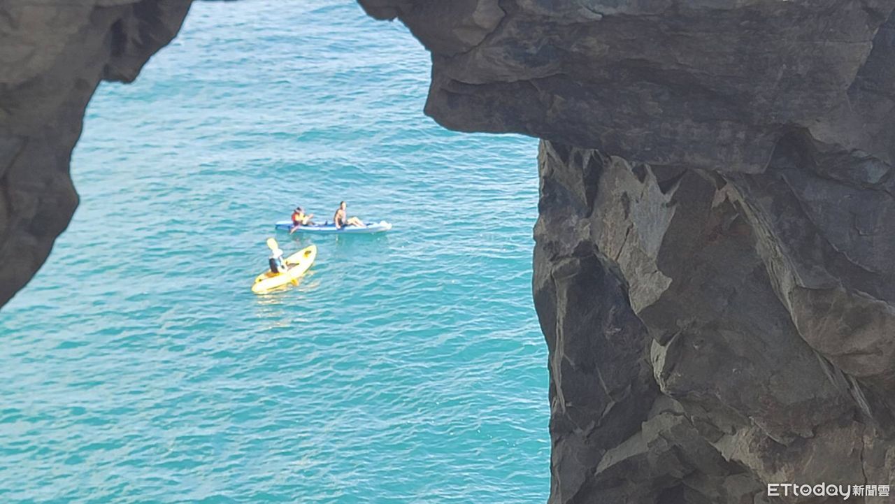 ▲瑞芳象鼻岩海域3人下水玩SUP,體力不支無法回岸邊。(圖/記者郭世賢翻攝)