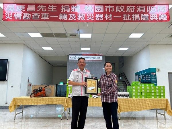 ▲桃園市民吳東昌捐贈救災器材。(圖/消防局提供)