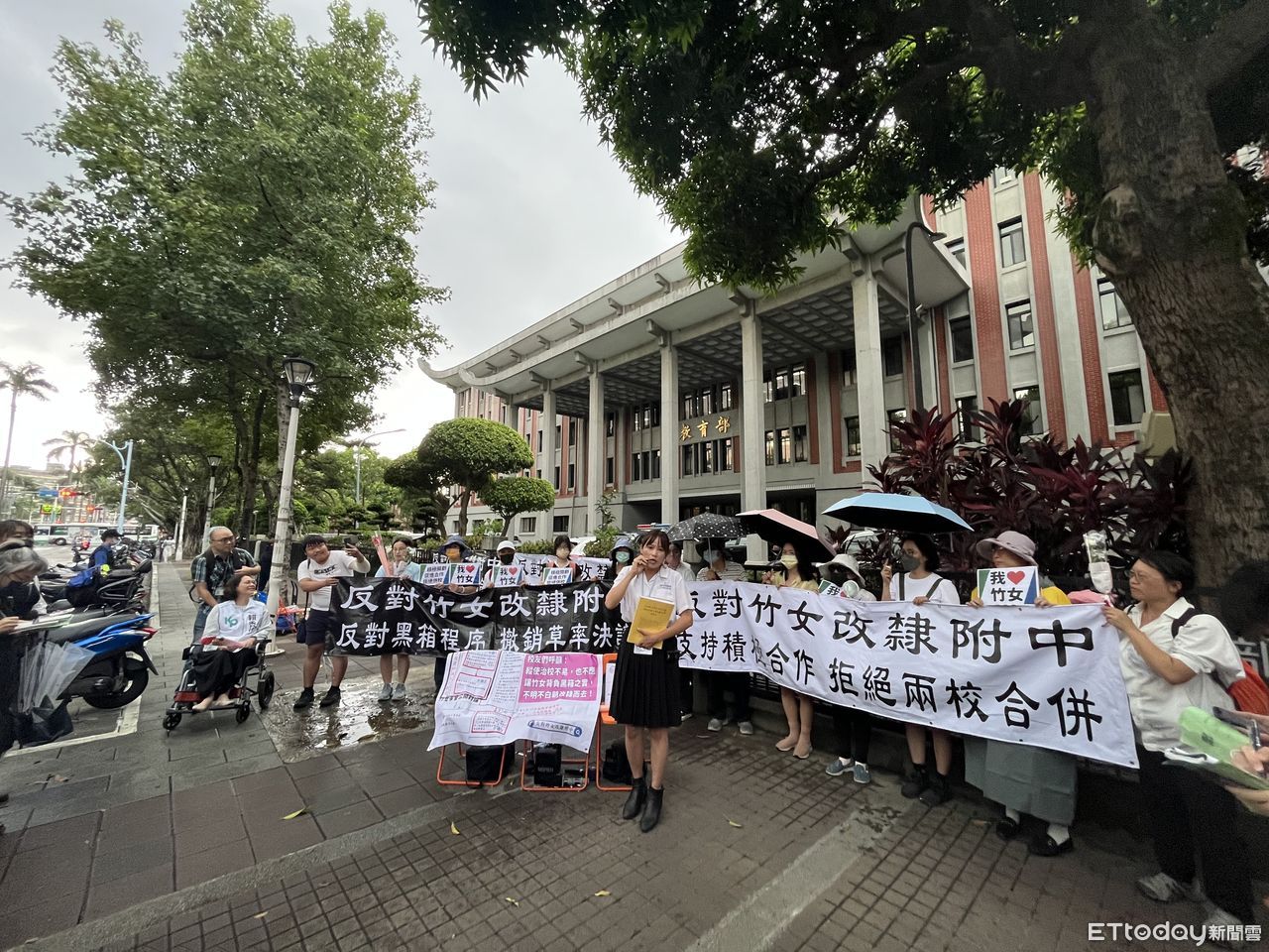 陽明交大邀請竹女改隸為附屬高中,但遭竹女校友反對發起連署,多名校友11日齊聚新竹女中校門外,向竹女校長遞送連署書,提出反對黑箱程序、撤銷草率決議等訴求。