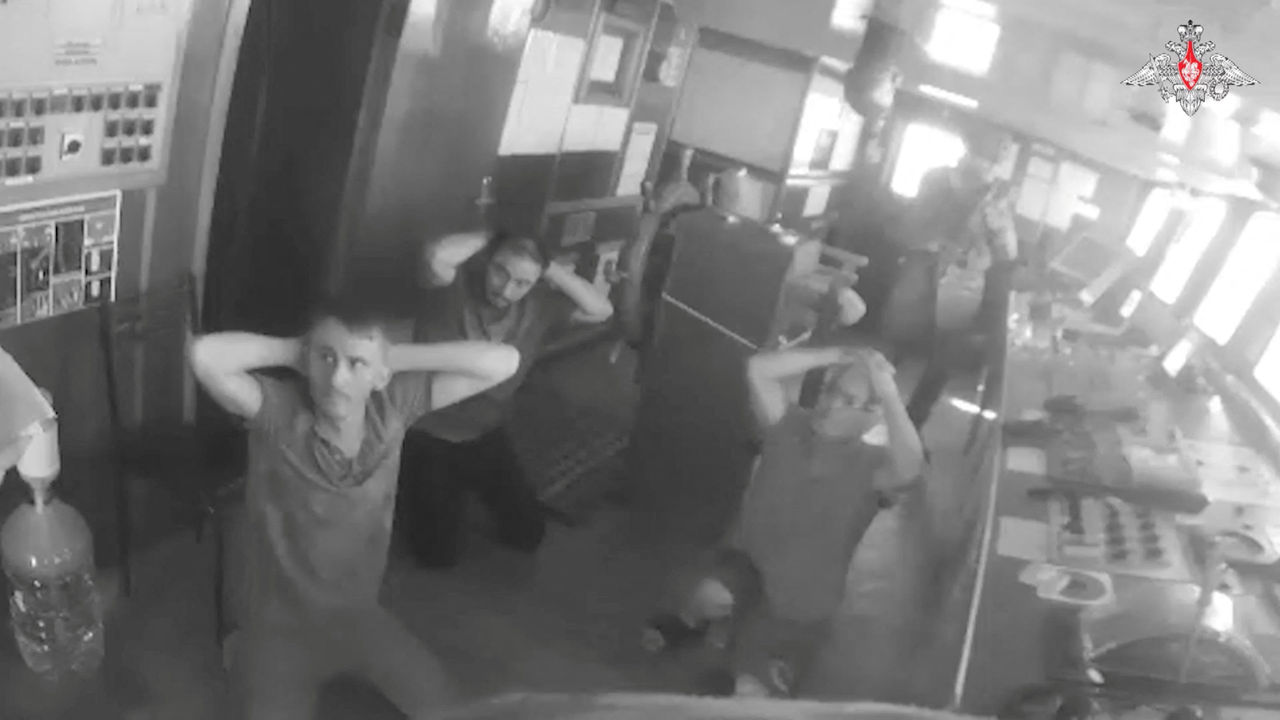 根據密錄器等畫面,克魯歐坎號(Sukru Okan vessel)船員雙手抱頭跪在甲板上或船艙內,俄軍持武器進入艦橋、也就是指揮駕駛室內,並且要求關閉機械。