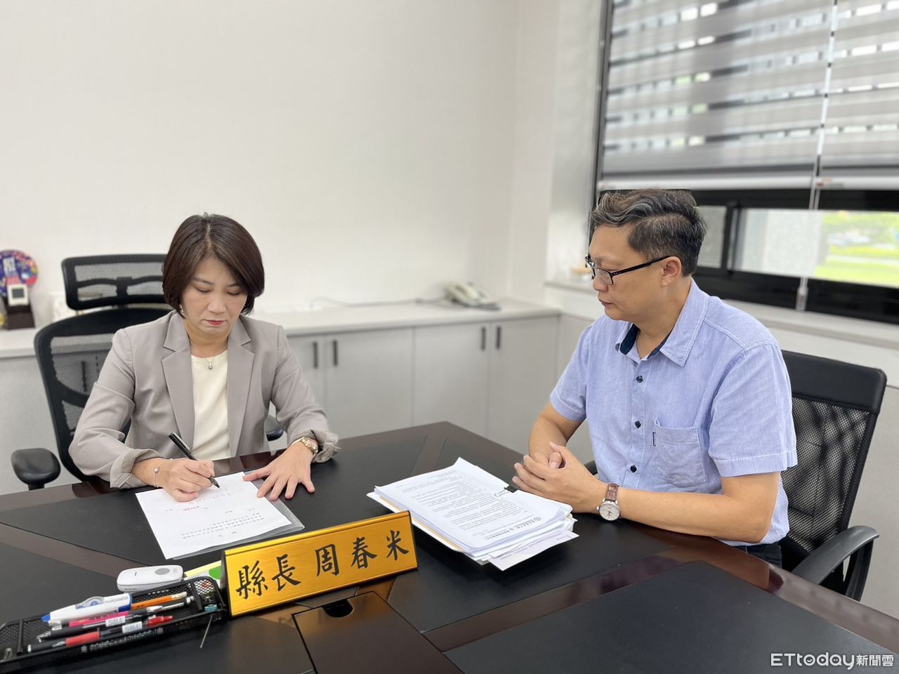 徐富癸在縣府服務超過8年,與縣府團隊建立深厚情誼和默契;周春米講到最後一度哽咽,徐富癸更是還沒開口道別就紅了眼眶,差點說不出話,現場氣氛離情依依。主管會報後,周縣長批准了徐富癸的職呈,職缺由民政處副處長楊新發代理。