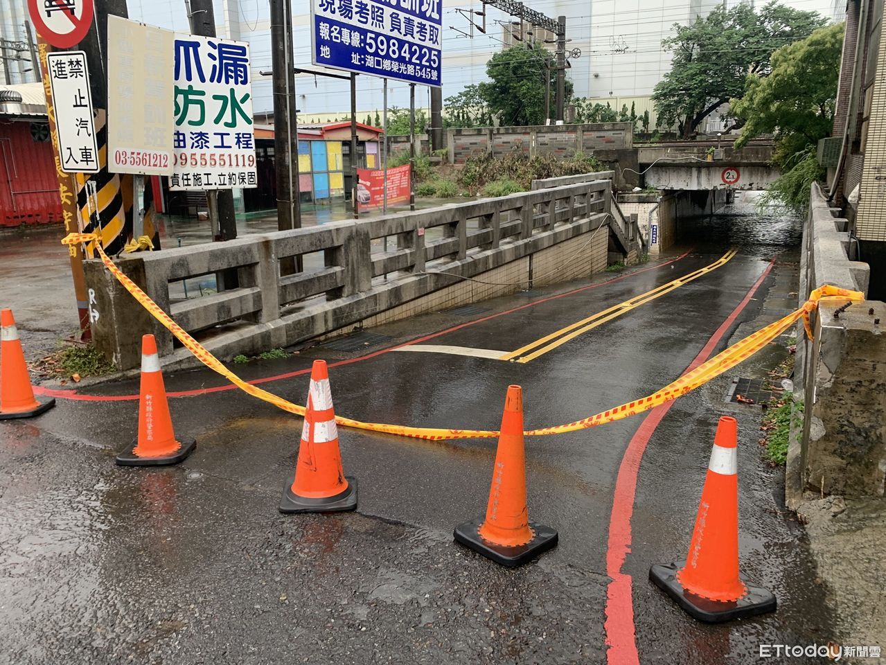 新竹縣府表示,下午2時許經縣府消防局第一大隊山崎分隊回報,新豐鄉新豐火車站附近大同地下道積水至約腳踝處高度,安全考量,由轄區派出所拉封鎖線暫時封閉,禁止人車進出。