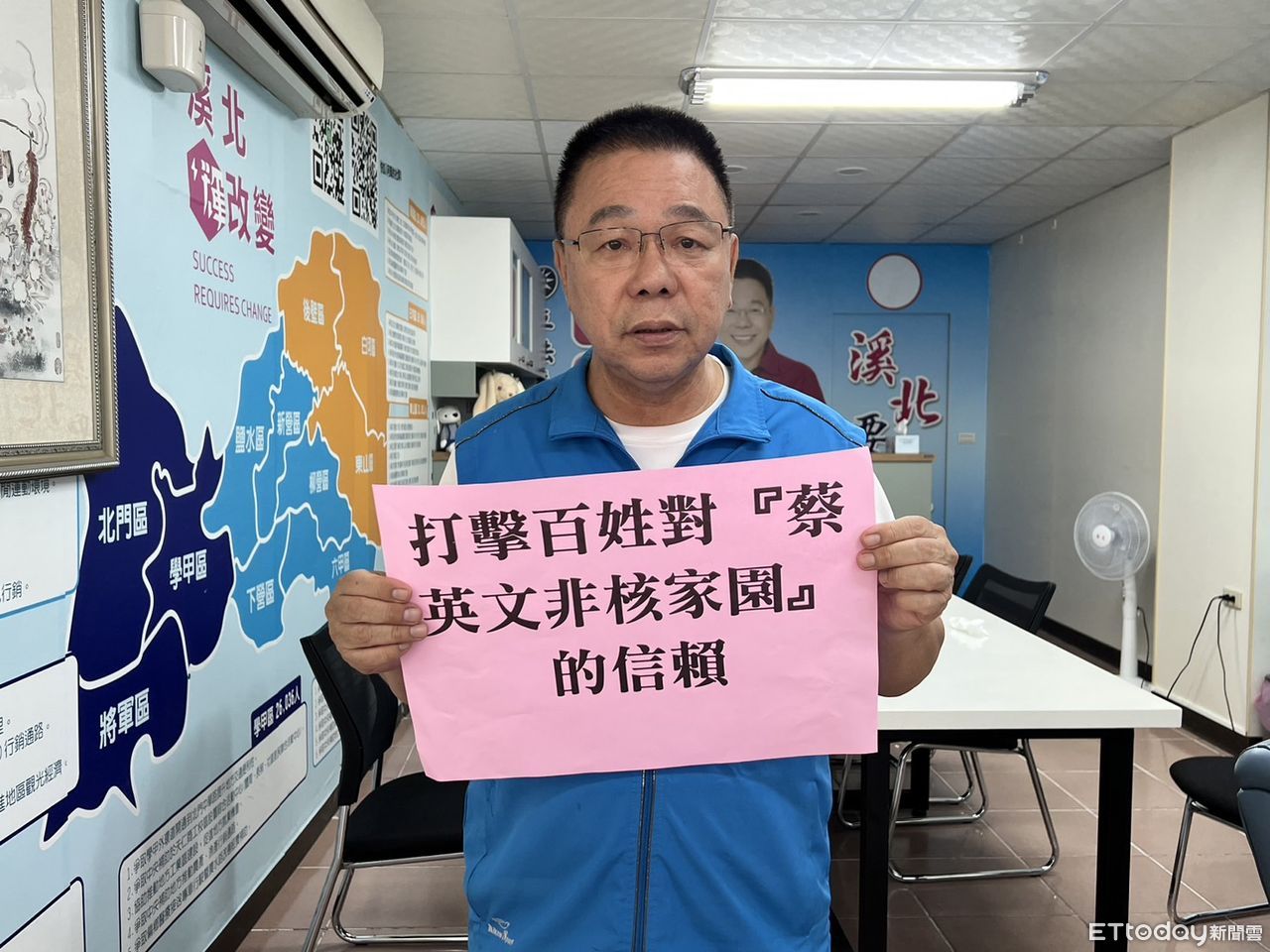 蔡育輝痛心說,台南人從沒想過有一天小吃的故鄉,居然在民進黨執政30年後,被網友嘲諷為「爐碴的故鄉」、「太陽光電黑金和黑槍的故鄉」,賴清德執政時期,爐碴汙染後壁和學甲農地,光一個學甲地區,檢察官認證的爐碴不法獲利高達21億,假借非核家園,賴清德不論在市長或者行政長任內,在台南到處種電,良田魚塭水庫都佈滿太陽光電板,前民進黨中執委郭再欽等人在前經發局長陳凱凌放行下,讓盤根錯結的太陽光電黑金成為民進黨總統、立委和議員選舉的提款機。