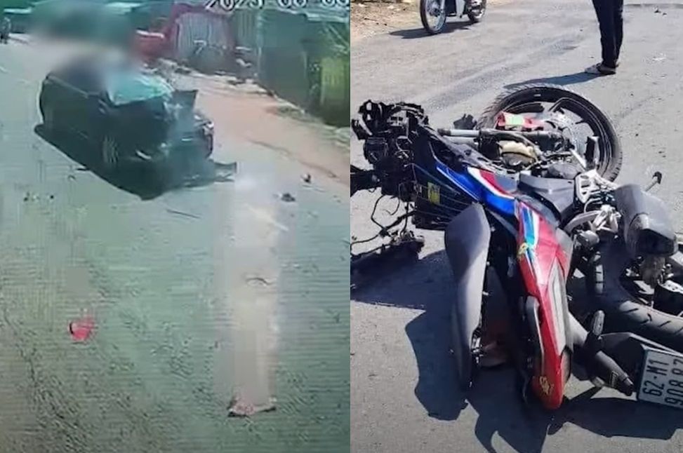 越南隆安省日前發生一起嚴重汽機車對撞事故,一輛機車在不知明情況下,竟然高速行駛在對向車道,導致汽車來不及反應直接撞上,機車騎士在空中翻轉後重落在汽車車頂,當場死亡。