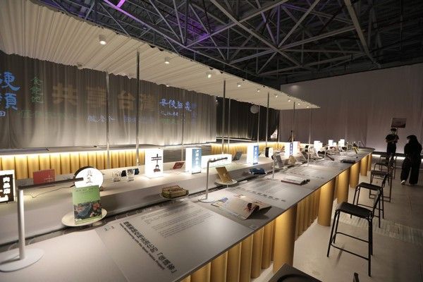 ▲「共享臺灣」區,以旋轉互動吧檯裝置,展示臺灣客家教育、地方創生、文化等各領域的嶄新樣貌。(圖/新聞處提供)