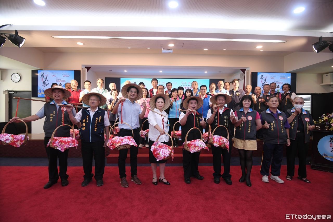 ▲縣長徐榛蔚與貴賓共同以挑扁擔的形式,宣布義民祭將登場。
