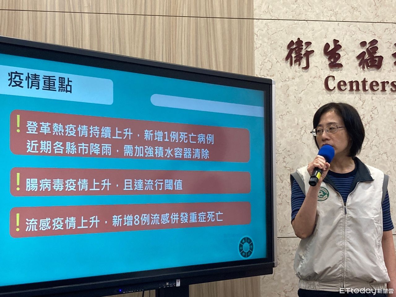 ▲疾管署疫情中心副主任李佳琳說明最新疫情。(圖/記者洪巧藍攝)