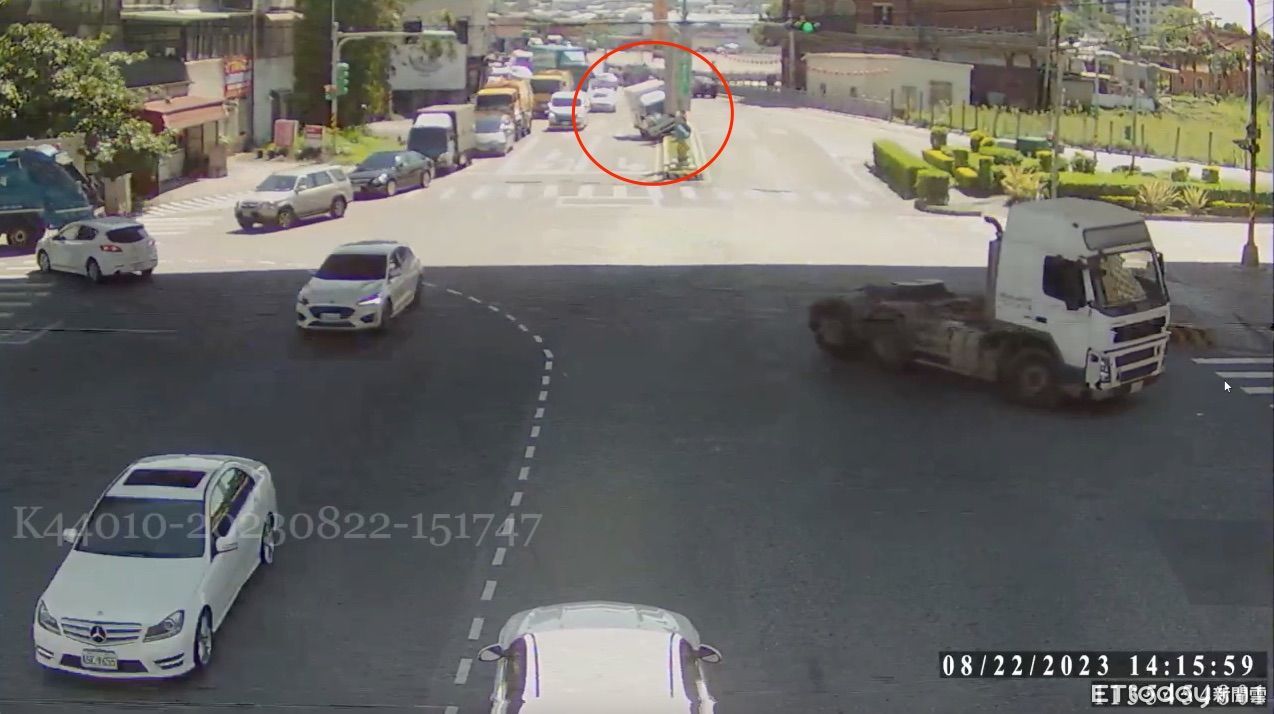 ▲▼小貨車司機打瞌睡撞分隔島路燈 。(圖/記者陳以昇翻攝)