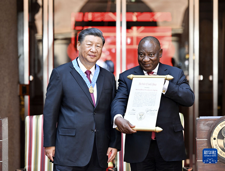 拉瑪佛沙於當地時間22日上午與習近平會談,並授予習「南非勳章」,這是南非授予重要友好國家元首的最高級別勳章和最高榮譽。