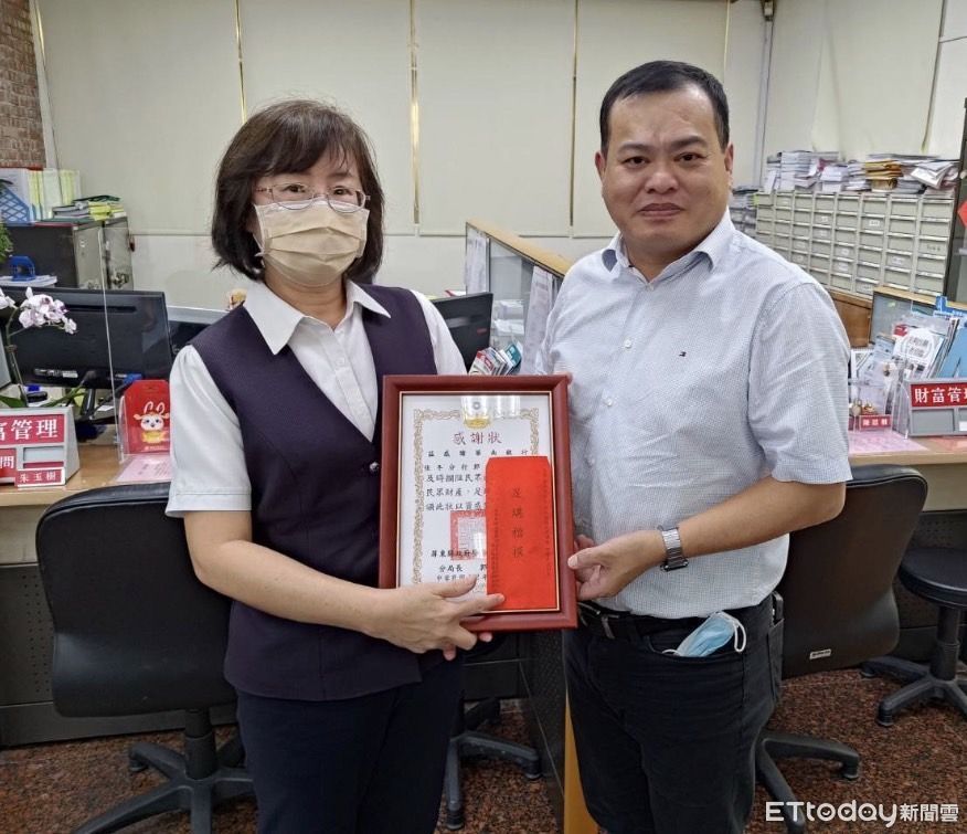 ▲枋寮警分局長郭譯隆率員到各行庫頒發感謝狀及獎勵金致謝。 。(圖/記者陳崑福翻攝)