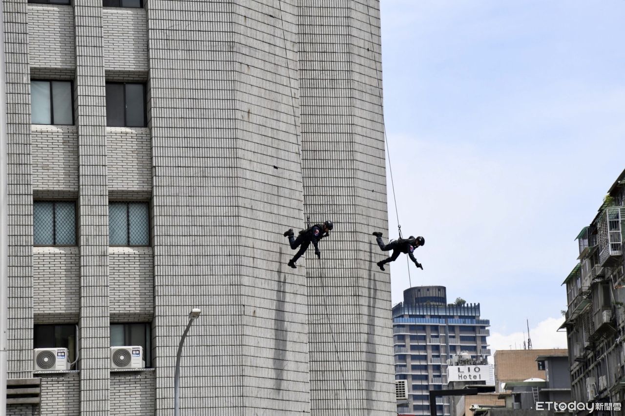 ▲北市警局辦親子日,找來警眷一起參加,現場還有特勤表演攀降吸引目光。(圖/記者邱中岳翻攝)