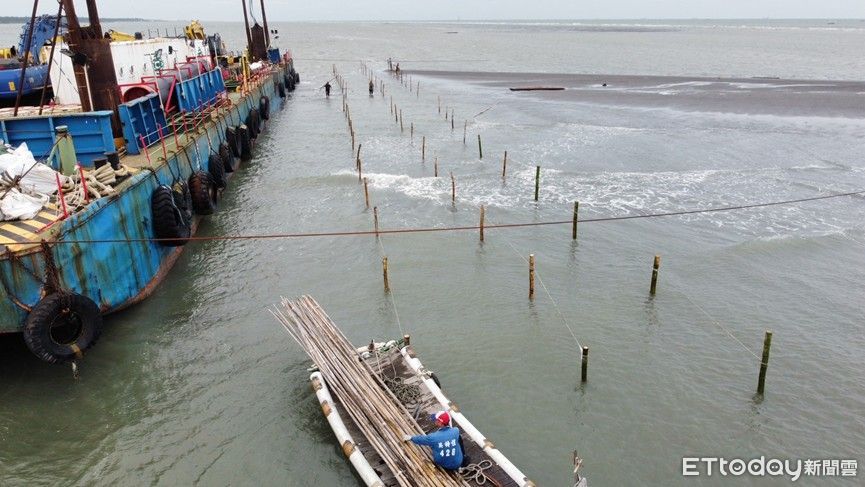 ▲蘇拉強颱即將來襲,但風電業者的船機卻無法回港避難,因為四周都佈有蚵架和竹子,業者呼籲政府能居中協調。(圖/業者提供,下同)