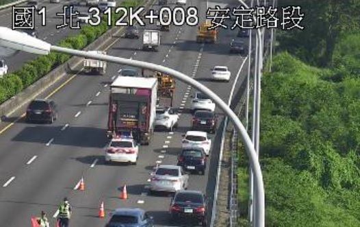 國道1號北向311.9k、台南安定段今(29日)上午7時36分發生4小客車與大貨車追撞交通事故,占用外側車道,高公局南分局、國道公路警察同仁已在現場進行事故車輛處理,後方車流回堵約5公里,籲請用路人放慢車速,小心行駛。