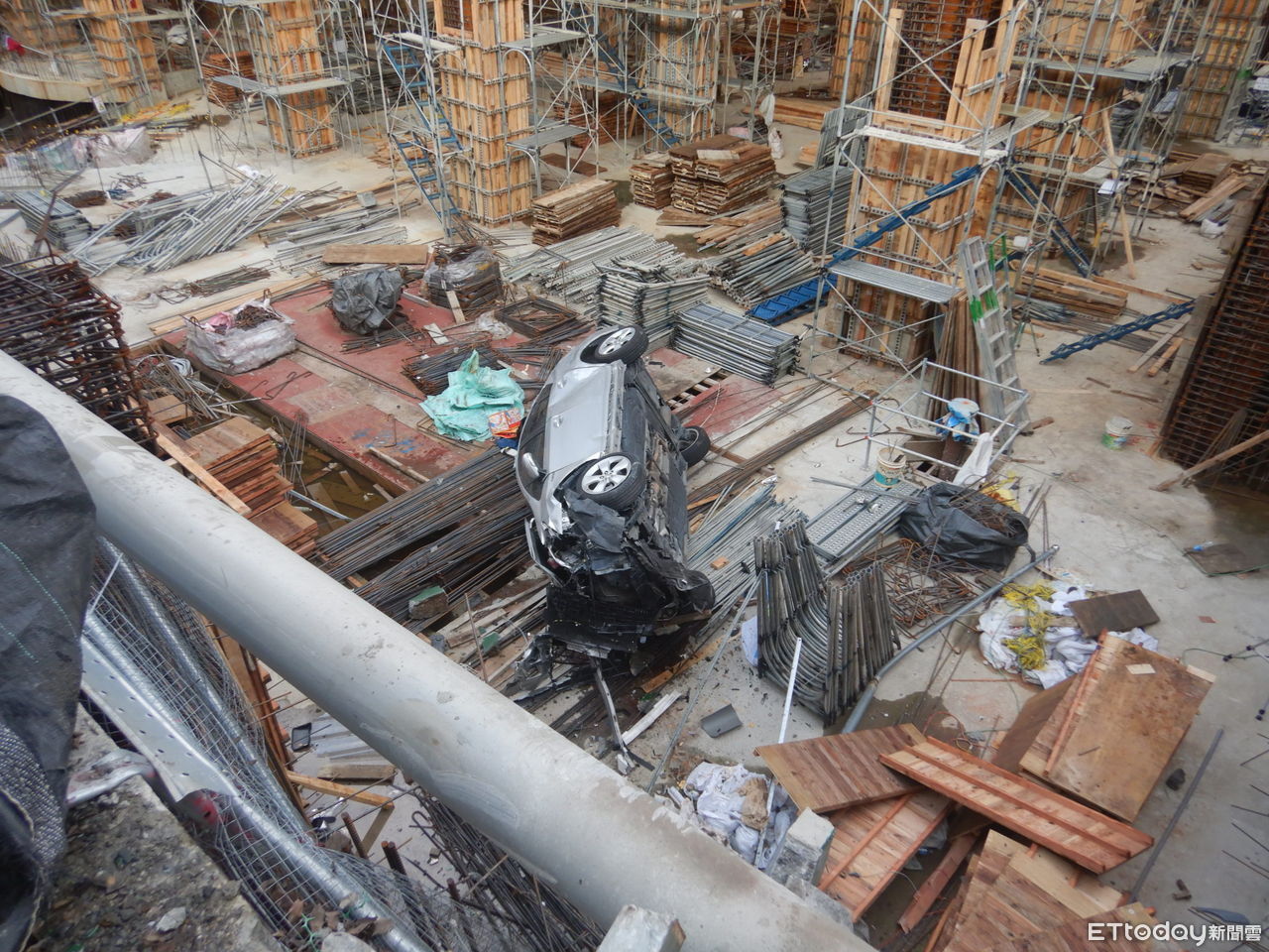 ▲台中自小客衝墜工地。(圖/記者許權毅翻攝,下同)