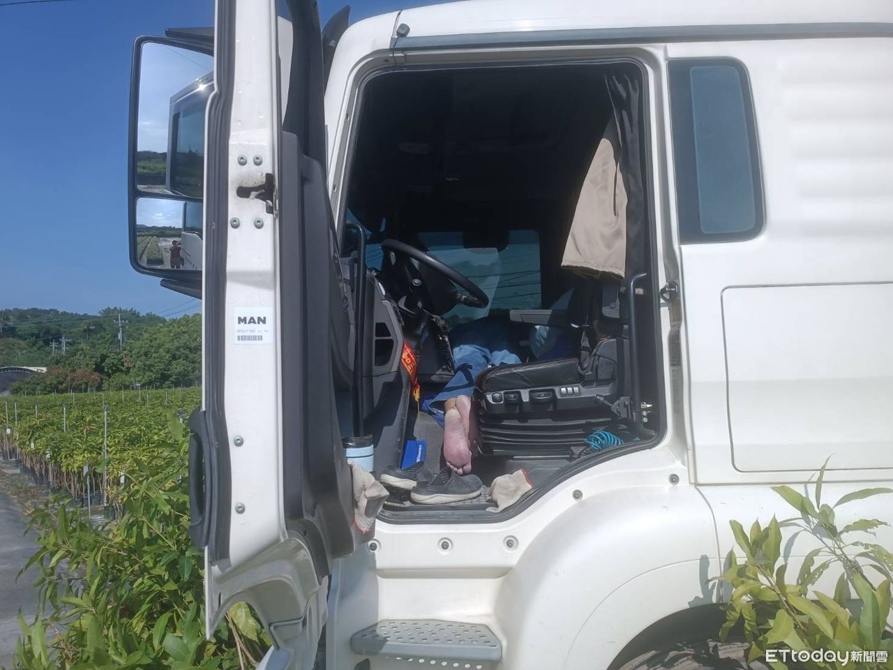 ▲台南市南化區台三線,靠北寮橋附近,29日上午發生1起砂石車自撞車禍,造成駕駛人昏迷送醫急救,有生命危險。(圖/民眾提供,下同)