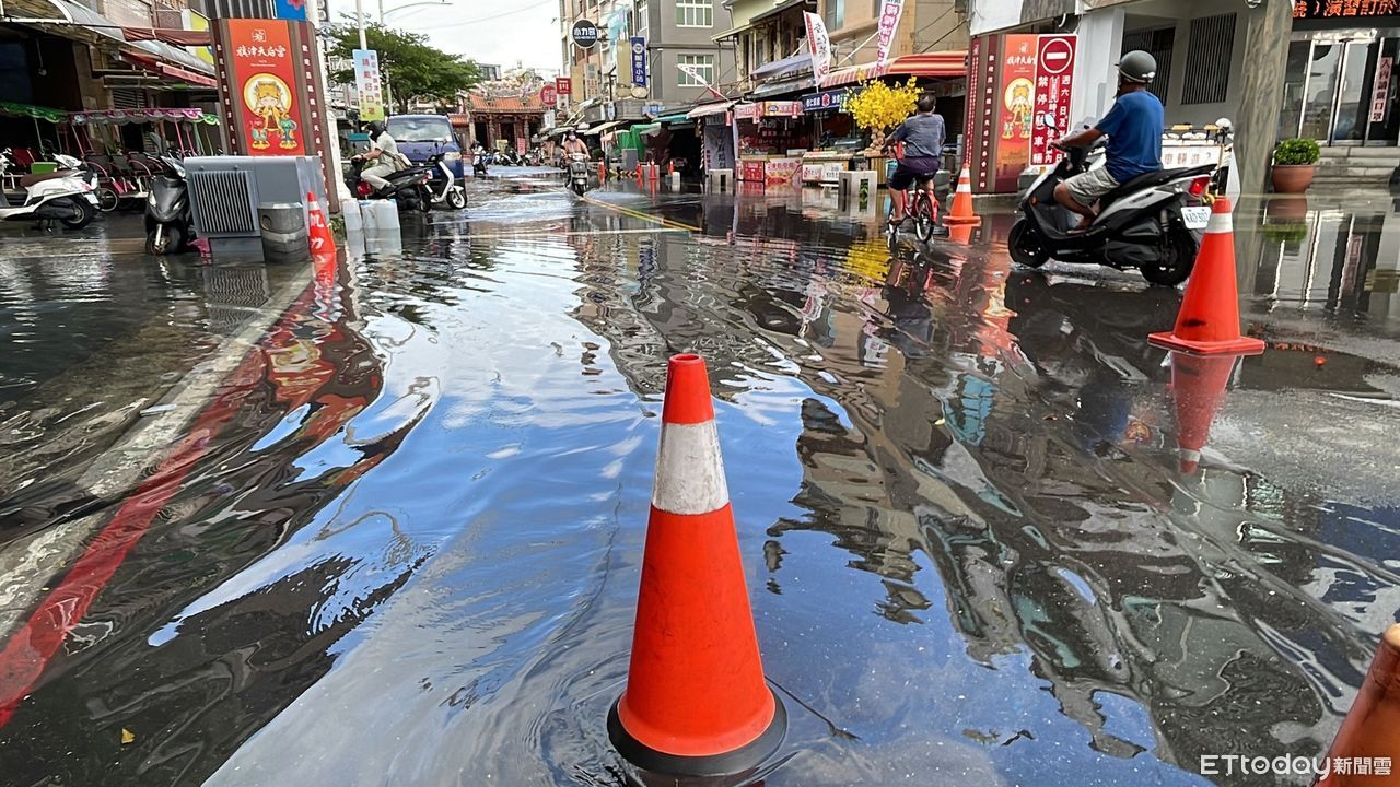 今天清晨旗津臨海低窪地區受潮汐影響,部分街道出現積淹水現象,面積約20平方公尺、深度5公分以下,所幸積水來得快,去得也快,已於6時20分左右退水。