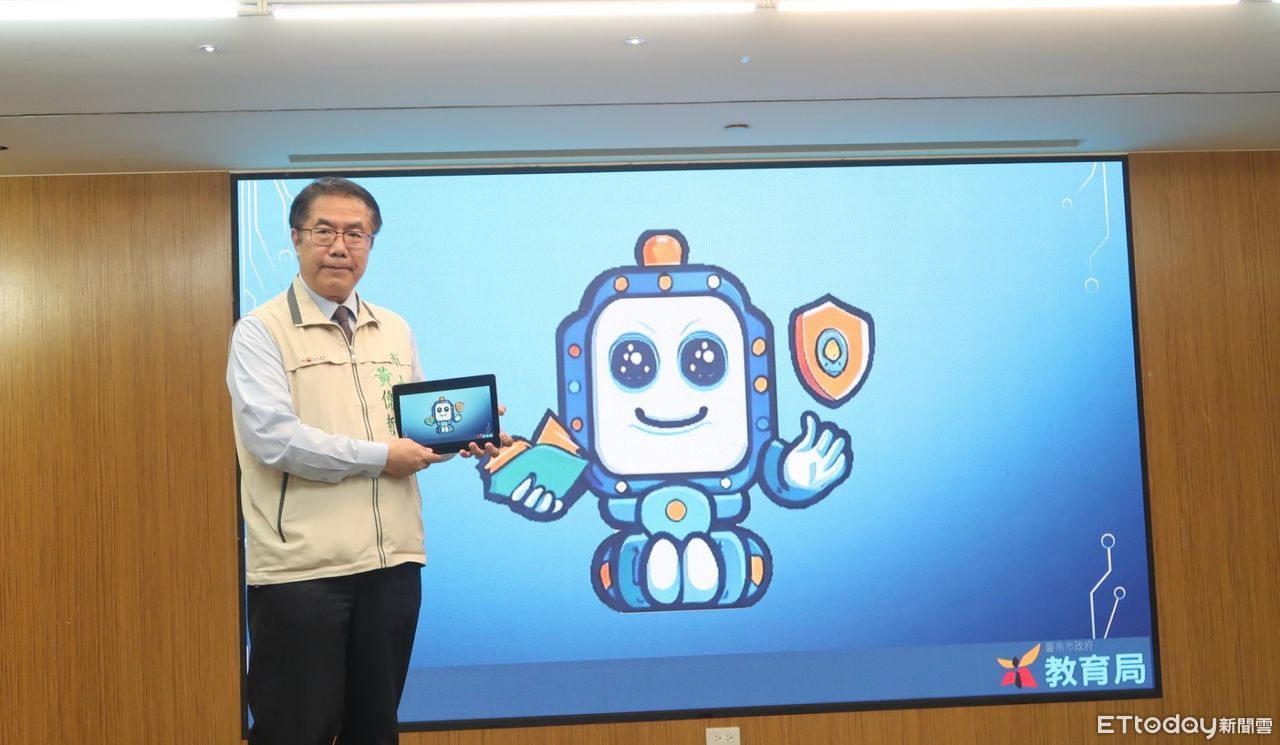 ▲台南市政府29日舉辦「安全的AI、學習的同伴」成果發表記者會,市長黃偉哲表示,台南目前是台灣第一個透過建立中介平台,正向導入AI輔助國中小學習的縣市。(圖/記者林東良翻攝,下同)