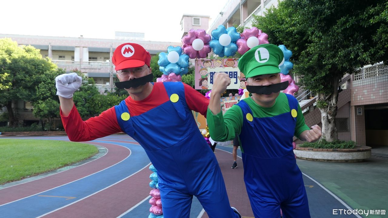 「歡迎小一新生!」西園國小校長張勝順一早裝扮成瑪利歐兄弟,在校門口熱情迎新,並設置乖乖門、勤學門、聰明門,提供家長和學生拍照打卡留念。張勝順說,希望藉由這些活動讓剛結束幼稚園生活的小一新生們,能在溫暖陪伴、快樂互動的氛圍中,儘快融入校園新生活。