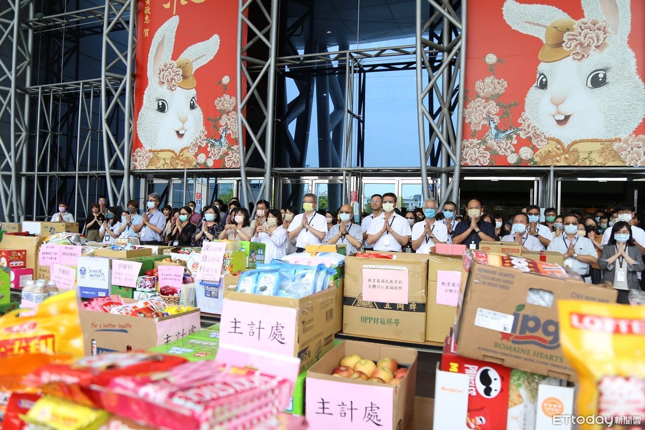今天市府及國稅局各單位準備了水果、零食、泡麵等豐盛的祭品,市府表示,為落實聯合國永續發展指標SDGs目標,市府各單位準備的祭品都盡量選擇裸賣的水果或以鋁箔包、寶特瓶、紙盒等可回收的包裝為主。祭祀結束,許多市府員工甚至自備食物袋、保鮮盒、環保袋等自行分裝,實踐「零包裝、零廢棄」環保永續原則,期望發揮公部門帶頭做的示範作用。