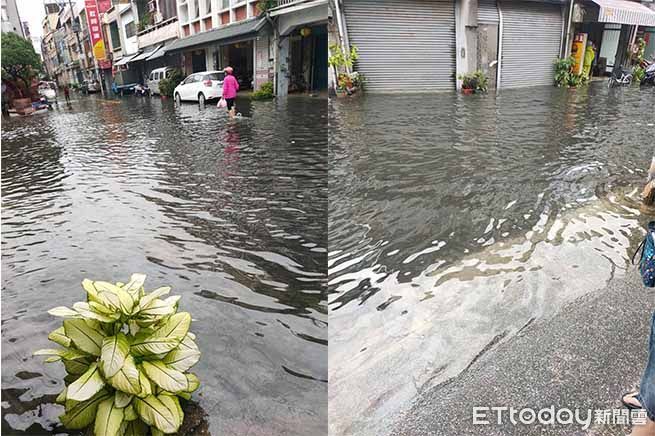 ▲東港光復路三段通往東隆宮王爺廟前道路積水情形。(圖/民眾提供)
