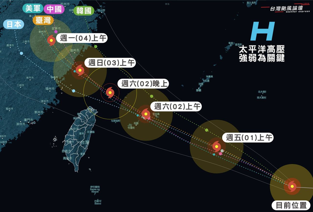 由於颱風快速移動,當路徑確定之後,應變時間會非常短暫。如果颱風會靠近,預計影響時間是週六(02)至日(03)下午,暴風圈有機會擦過雙北、基隆、北海岸陸地。