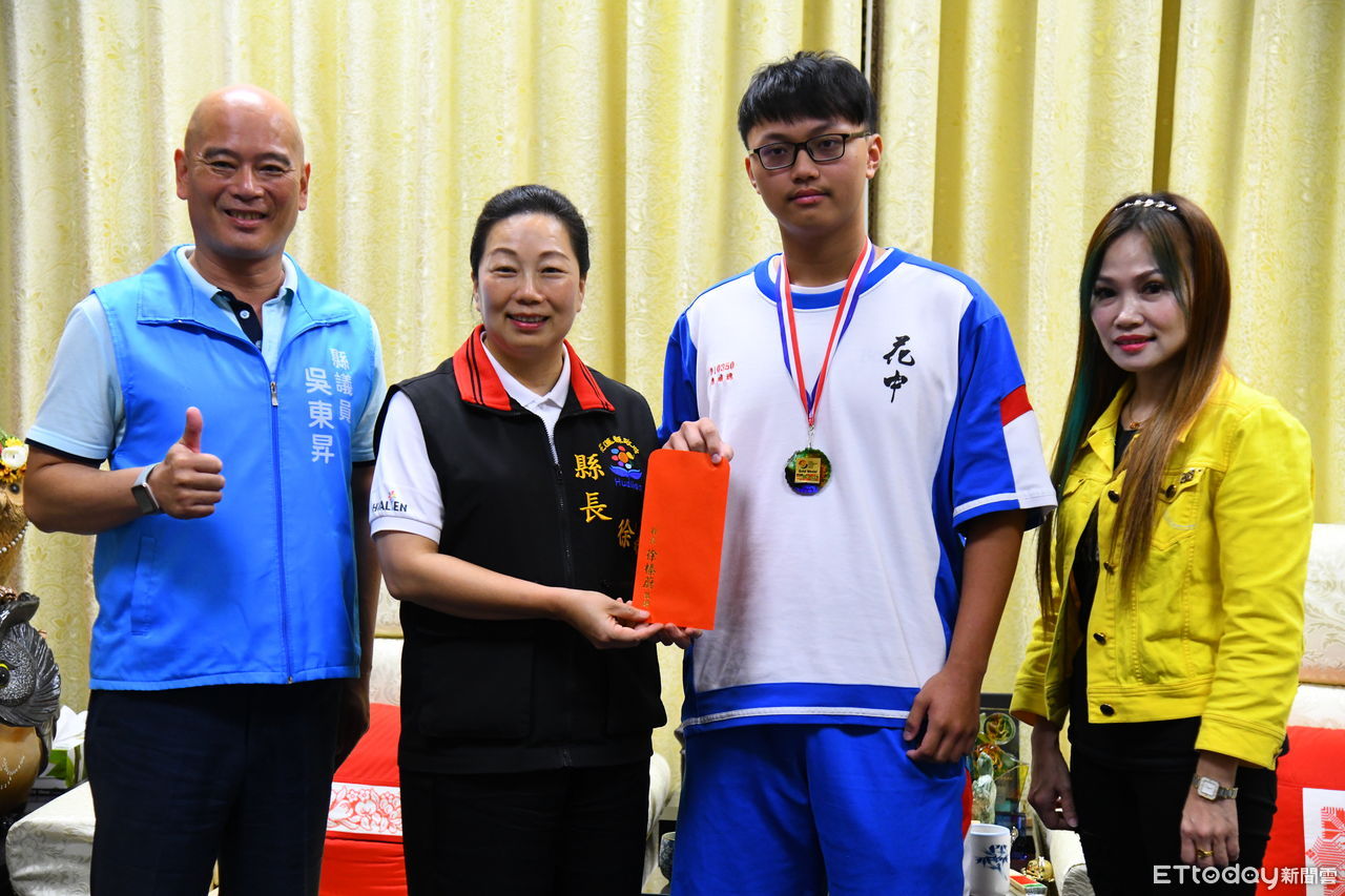 ▲徐榛蔚頒發獎金表揚,期許再接再勵,持續為花蓮爭光。