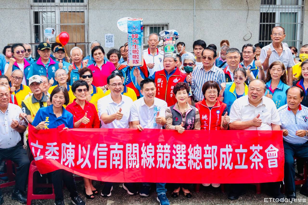 ▲立委陳以信1日上午舉辦南關線競選總部成立茶會,國民黨主席朱立倫與馬英九總統的大姊馬以南特別南下祝賀,現場超過2百人參加冠蓋雲集人氣爆棚。(圖/記者林東良翻攝,下同)