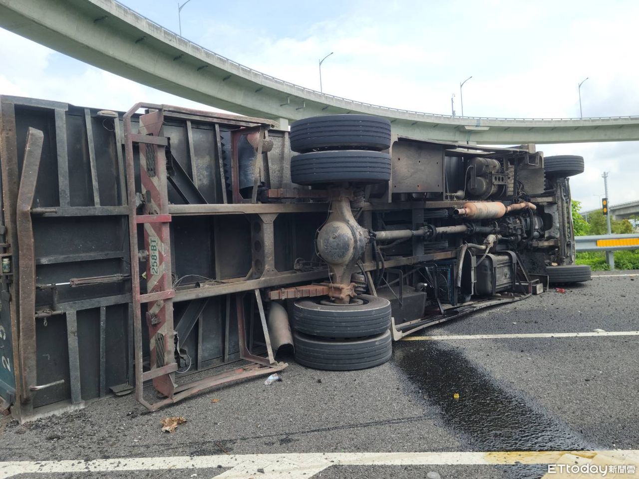 ▲國4潭子系統出口大貨車翻覆,釀1死1傷。(圖/民眾提供)