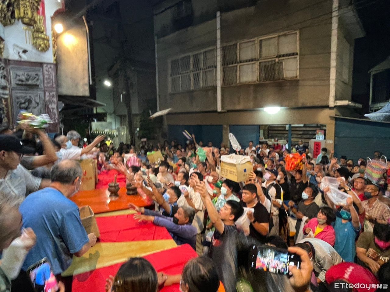 ▲台南市北區北華街開基龍君廟40年來的中元普渡大布施「冥陽兩利作法」成為地方的在地特色。(圖/記者林東良翻攝,下同)